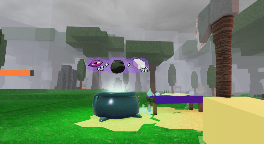 - 材料投入:森で集めた素材を、レシピ通りに正しい種類+必要数だけ大釜に入れる(インタラクト)。