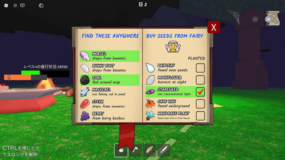 - キャンドルを切らさない:家をアクティブにするキャンドルは非常に重要です。トリック・オア・トリーターLv3で効率よく集めましょう。