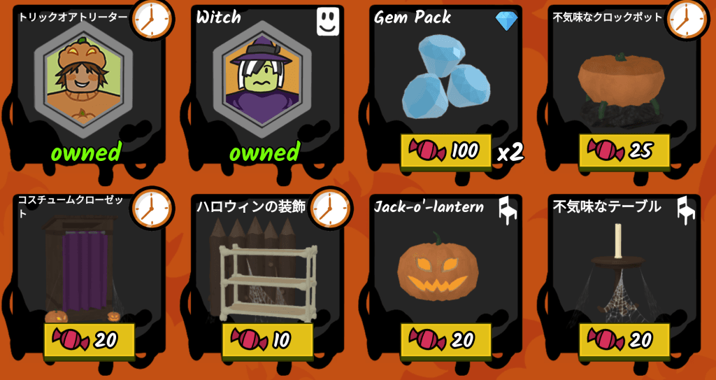 - クラス購入順序: まず安価な「トリック・オア・トリーター」でキャンディ収集効率を上げ、十分なキャンディが集まったら「ウィッチ」の購入を検討するのが良いでしょう。